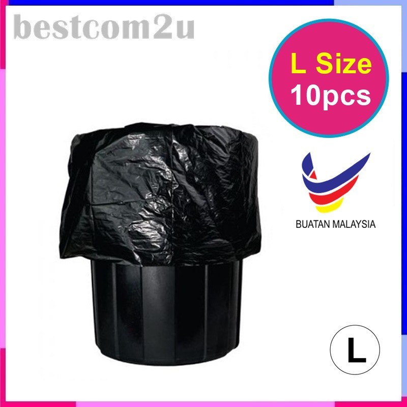 Black Garbage Bag Plastik Sampah Hitam Size L 10pcs Shopee Malaysia